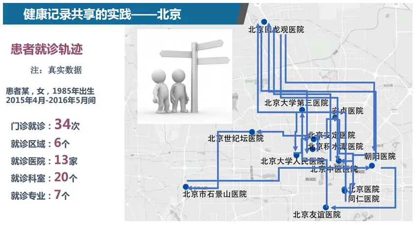 在患者扎堆的北京,如何在有限的時間里充分了解患者病情、既往病史、歷史用藥等情況,對醫(yī)生而言非常重要,因為這會直接影響接下來治療方案的準確性和有效性。當北京地區(qū)30家醫(yī)院電子病歷互聯互通后,醫(yī)生用藥有了更多參考依據,更多的證據參考讓醫(yī)生診斷更有信心了。2020年1月4日,北京市衛(wèi)健委信息中心副主任鄭攀在"2019~2020 HC3i數字醫(yī)療網年度會議"上發(fā)表演講,從北京市的醫(yī)療衛(wèi)生信息化建設工作發(fā)展歷程,到新時期以電子病歷共享為代表的互聯互通共享成效及未來發(fā)展,進行了詳盡介紹。解讀北京市衛(wèi)生健康信息化發(fā)展歷程北京市的醫(yī)療衛(wèi)生信息化建設可以劃分為初步發(fā)展階段、快速發(fā)展階段、整合共享階段、互聯互通與大數據建設四個階段:從2003年非典防治開始,政府主導的公共衛(wèi)生信息化建設開始提速;到2017年互聯互通與大數據階段,由政府主導的衛(wèi)生健康機構數據互聯互通支撐大數據應用逐步落地。 鄭攀表示,“互聯互通與大數據行動計劃目前正在研究設計階段,各項應用正逐步落實。” 3001360次跨院病歷調閱,北京衛(wèi)生信息化建設顯成效電子病歷共享工程一期于2016年完工,現已初步搭建平臺,建設相關對接標準,目前共接入30家市級醫(yī)院,基本實現醫(yī)療機構間電子病歷信息采集共享、雙向轉診、遠程會診,同步完成居民健康信息門戶建設。統(tǒng)計顯示,2018年5月至2019年7月期間,總的病歷調閱量為3001360次,調閱率5.3%。以阜外醫(yī)院為例,跨院電子病歷調閱平均每日基本維持在31-77例,電子病歷調閱正逐步成為醫(yī)生日常處理近期跨院就診患者的有效輔助手段。以阜外醫(yī)院某病人為例,醫(yī)生需要為他開具凝血機制的藥物。當病人到醫(yī)院復診時,醫(yī)生發(fā)現上次開的凝血機制藥物作用不是太好。通過調閱該病人在其他醫(yī)院的就診記錄,發(fā)現其他醫(yī)院為這位病人開過一種中藥,聯合用藥的過程中,這類中藥的藥性正好不利于該凝血機制的藥發(fā)揮作用,因此造成了當下對凝血藥物的干擾。找到問題所在之后,醫(yī)生就可以有的放矢的采取措施了。類似的例子還有很多,在電子病歷互聯互通之后,全市就診人群的健康數據漸漸呈現出來。通過對患者診療記錄的追蹤,讓全市衛(wèi)生管理和健康促進等相關機構,都能對我市人口健康情況有進一步的了解,為接下來制定相關政策提供數據支撐。